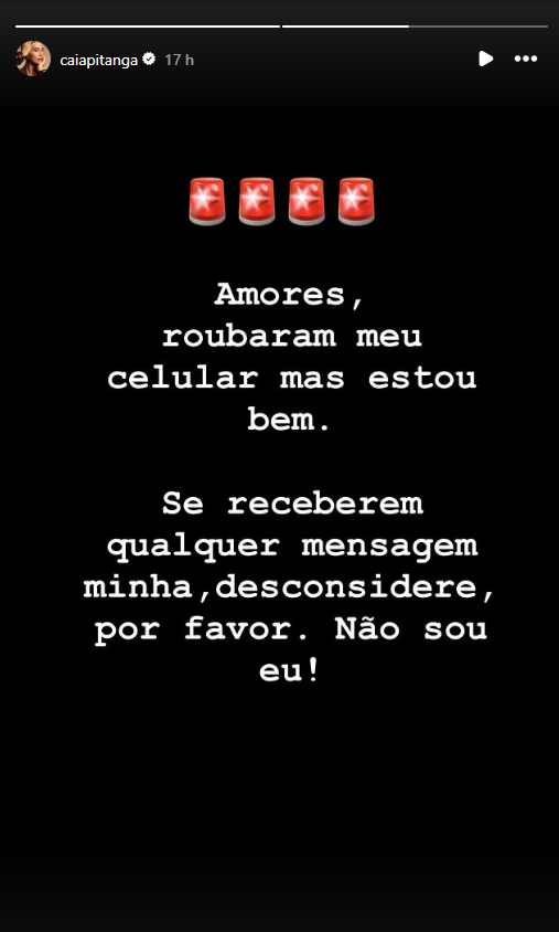 – Amores, roubaram o meu celular, mas estou bem – escreveu.